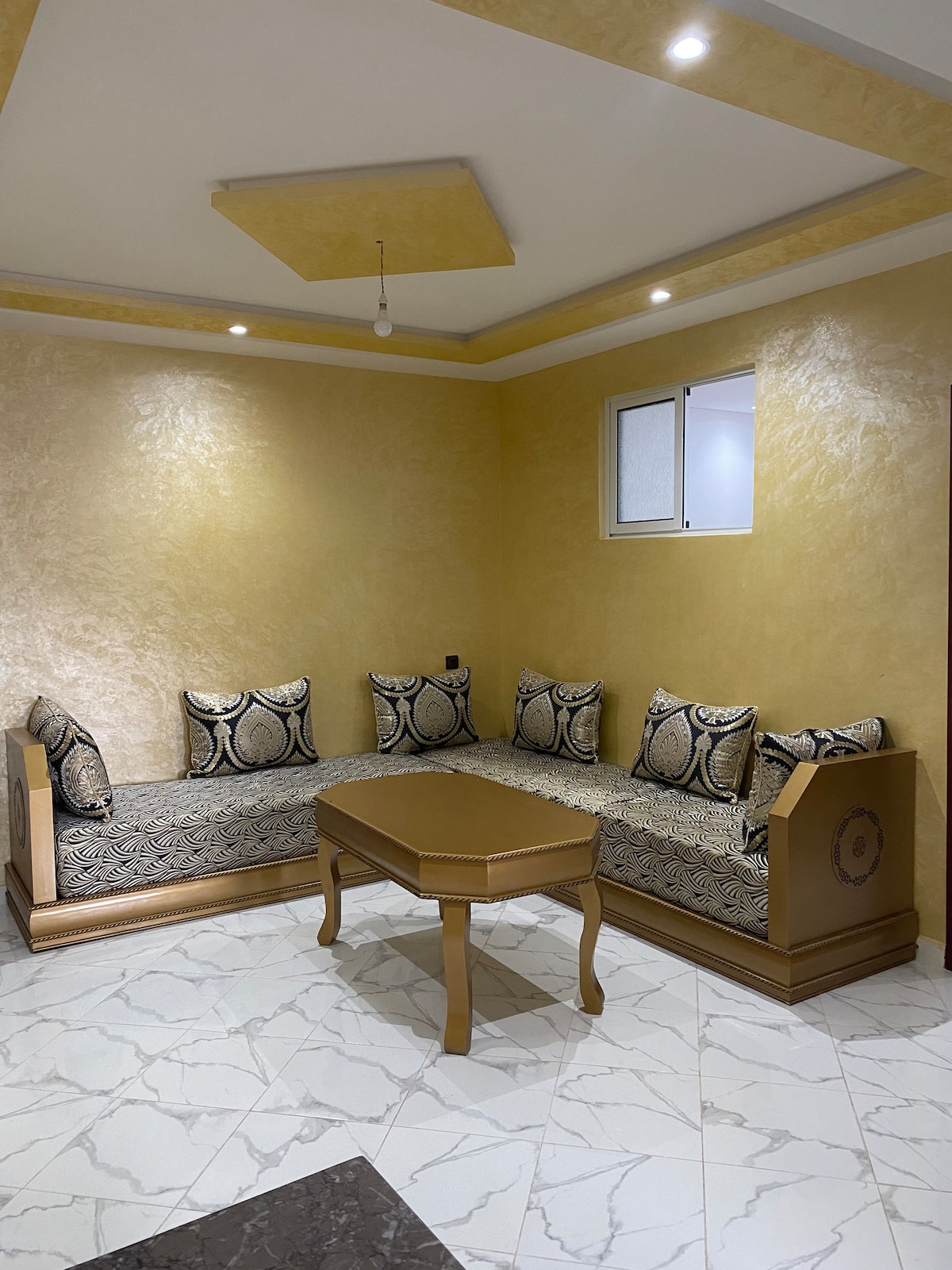 Profitez d'un séjour en famille inoubliable dans ce duplex à Tanger . situé à proximité de l'hôtel Farah,et au coeur de la zone Ghandouri à Tanger, cet appartement moderne offre une vue imprenable sur la mer et se trouve à quelques pas de nombreux cafés et restaurants animés. À l'intérieur, vous découvrirez un salon confortable pouvant accueillir jusqu'à 5 personnes, 2 chambres spacieuses, deux salles de bains, une cuisine entièrement équipée ,une buanderie et deux balcons pour admirer la vue.