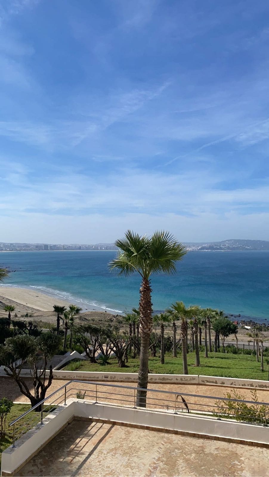 Wake up to the sound of waves and stunning views of the Mediterranean, Tangier Bay, and even Spain. This 2BR seafront apartment in sought-after Malabata offers panoramic views from every room, terraces, direct beach access, a full kitchen, a smart TV, fast Wi-Fi, A/C, and gated parking. Just a 5-minute walk to cafés, Villa Harris Park, and Mogador Hotel. 11 min to the Grand Socco. ⚠️ Located on the 2nd floor (60 steps from the garage), no lift. 👶 Baby bed & high chair available on request.
