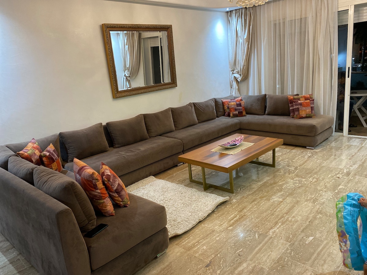 Seul(e) ou en famille? Vous souhaitez passer un agréable séjour à Tanger au calme, en toute sécurité et intimité tout en profitant de la mer et de la piscine? Mon appartement est à votre disposition en court ou long séjour. Situé dans une résidence de luxe de très haut standing, vous aurez à votre disposition une vue et un accès à la mer, 3 piscines, 2 court de tennis... Il est à seulement 3min en voiture du casino et 8min du centre ville.
