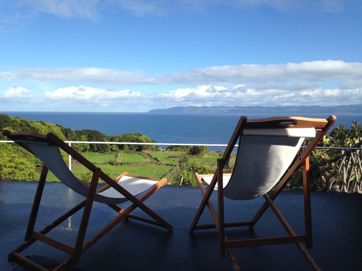 Muita luz, vista espantosa sobre o mar e onde se vê na sua plenitude a ilha de São Jorge. Primeira linha de Mar! Vista para a montanha do Pico, o ponto mais elevado de Portugal. Casa muito confortável, utilizámos madeira da ilha no seu interior. Uma muito boa localização entre a Madalena e São Roque e perto do Aeroporto. Cozinha bem equipada. Relaxe, leia, observe o mar, os barcos e a Montanha também.