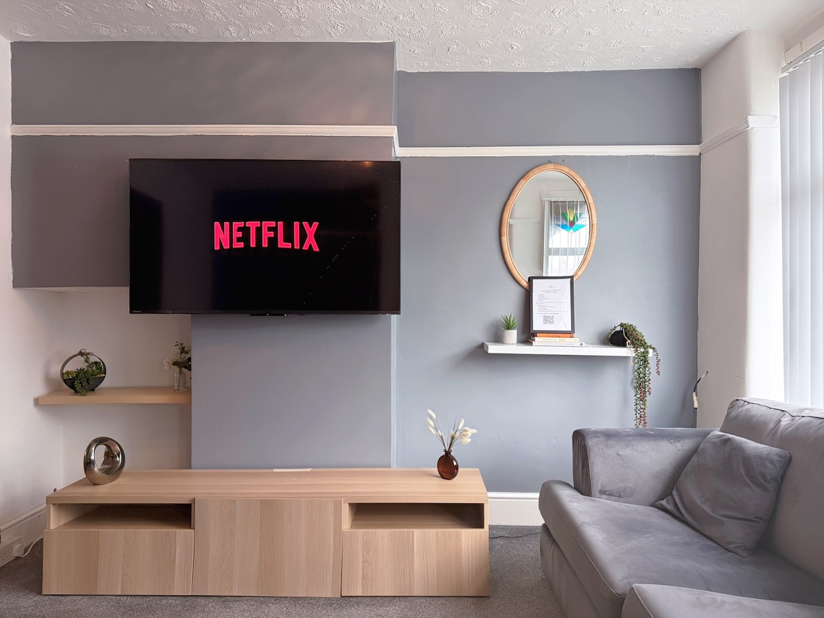 This stylish 3-bedroom, 1.5-bathroom home with free parking offers comfort and convenience. Located next to the tram station, enjoy quick access to the City Centre, Etihad Stadium, and Co-op Arena. Each bedroom has a comfy bed and TV, creating a cozy retreat after a day out. With modern amenities, a fully equipped kitchen, a spacious living area and a conservatory/games room with a pool table, this home is perfect for families, groups and business travelers. Long-stay discounts available!