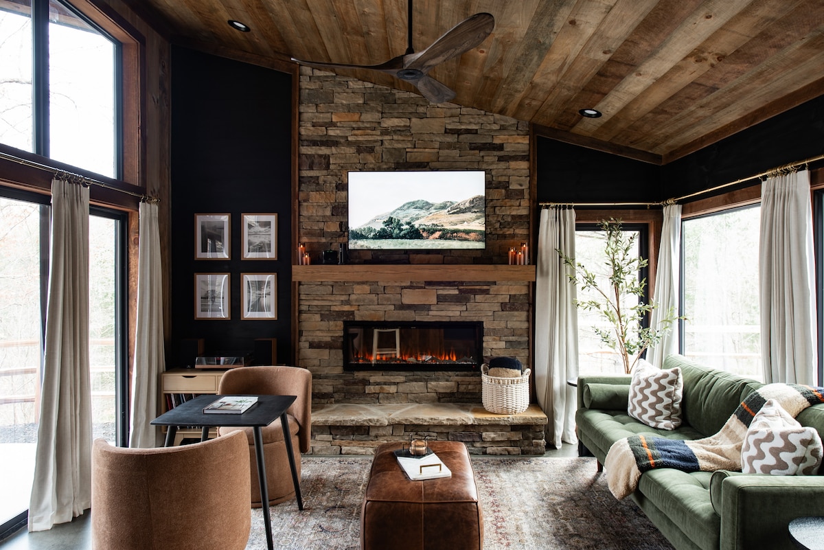 Serene 2BR/1Bath cabin on the Cartecay River. Enjoy 150 ft of private river frontage with a beach, rapids & fire pit. This light-filled 500 sq ft retreat features custom art, modern design & cozy details. Relax in the hot tub, watch a movie on the projector, or nap on the riverside bed swing. - Sleeps 4 | luxury linens + modern fixtures - Hot tub, bed swing, movie projector & outdoor fire pit - Direct river access for tubing & kayaking - Superhost care—always a message away