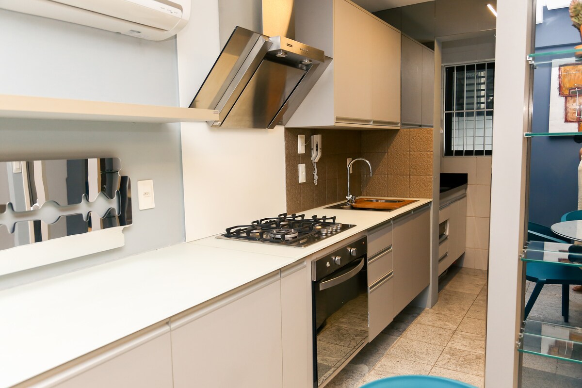 Welcome to your escape from the routine! Our comfortable one-bedroom apartment combines rustic design with comfort and practicality, a modern kitchen equipped for culinary adventures, soft pure cotton bedding and panoramic views of the neighborhood just a few meters from the beach. Located in the vibrant neighborhood of Boa Viagem rich in local cafes, gourmet bakeries, local and international cuisine restaurants, hypermarkets and nightlife and public transport all just a few steps away.