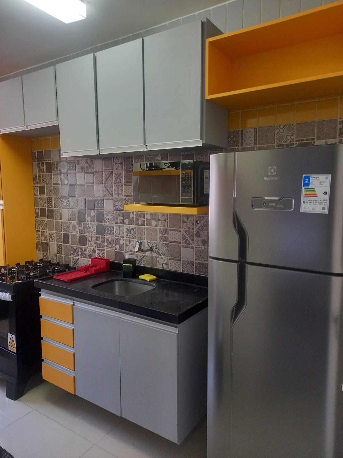 O apartamento é cômodo, pequeno, limpo, arejado. Da janela se vê o mar. Sala com cozinha americana, quarto e banheiro . Geladeira, cooktop, micro ondas, ar condicionado de janela, uma escrivaninha no quarto, TV smart no quarto, TV na sala, alguns utensilhos de cozinha. cama de casal , armar cama de campanha solteiro (3pessoa) Recepção 24h e manobrista incluso Hóspedes terão acesso o apto inteiro . O Flat possui piscina. Não aceitamos visitas e nem pets Será uma satisfação em receber vc!🌻