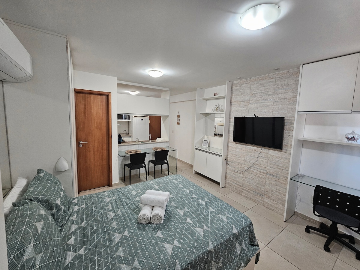 ⭐️⭐️⭐️⭐️⭐️ Bem-vindo ao Seu Lar em Boa Viagem! Excelente Localização, Studio completo, com cama de casal e sofá-cama, ar-cond Split, Smart TV, Wi-Fi, mesa de trabalho e de jantar, cozinha completa com cooktop, micro-ondas e utensílios, armário, espelho, móveis planejados, roupa de cama e banho. Recepção 24h, garagem, piscina, sauna, academia e mercadinho. Localização privilegiada: Shopping Recife (5 min a pé), praia (10 min a pé) e hipermercado em frente. Reserve agora e viva a experiência!