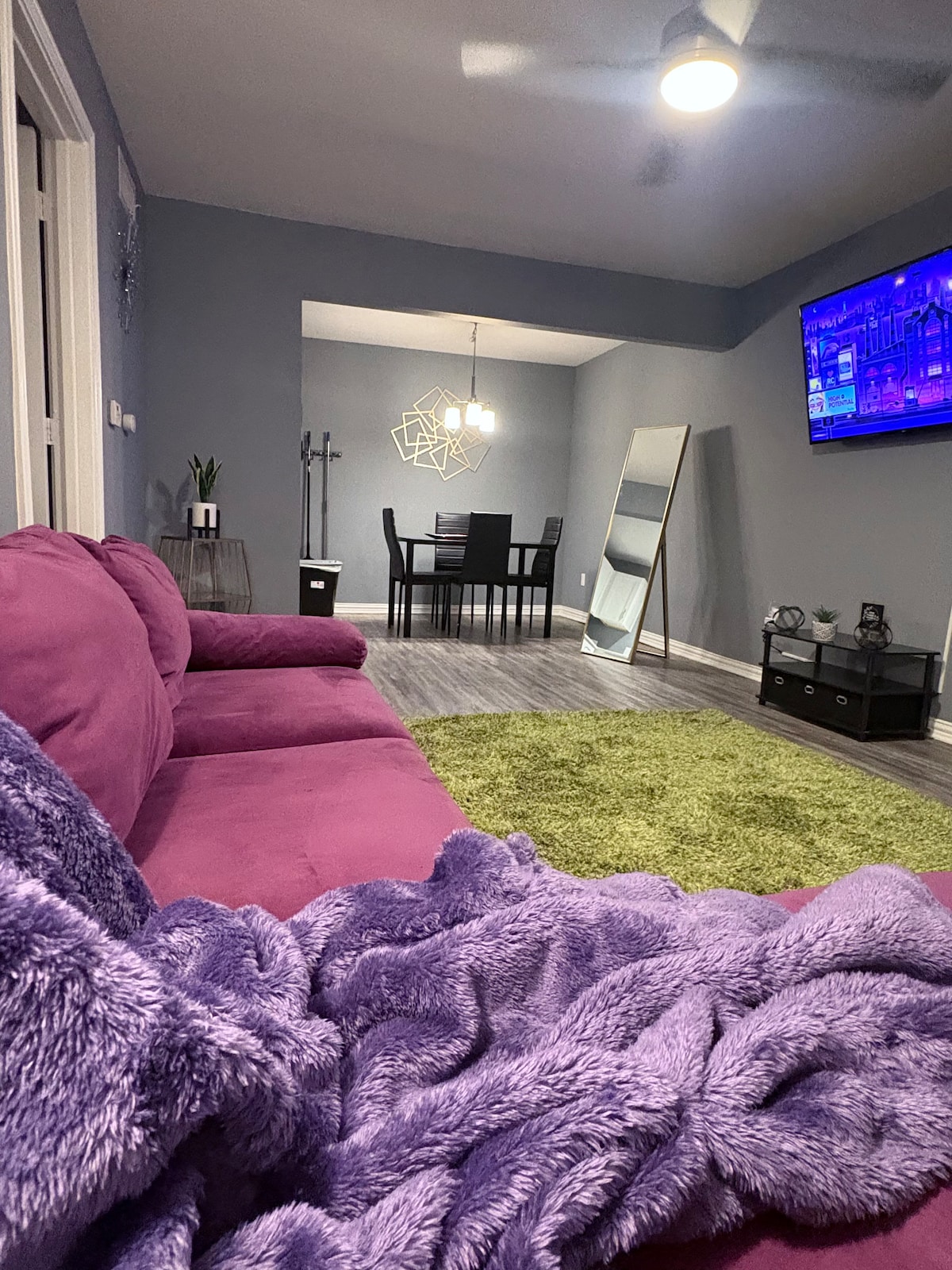 Welcome to our cozy apartment nestled in the heart of the city. This stylishly furnished space features a luxurious King bed, ensuring a restful night's sleep. The open layout of the stumaximizes functionality and a comfortable seating area perfect for unwinding after a day of exploring. Natural light floods in through large windows, creating a bright, inviting atmosphere. Enjoy high-speed WiFi and a smart TV for entertainment. With its prime location you'll have easy access to nearby attraction