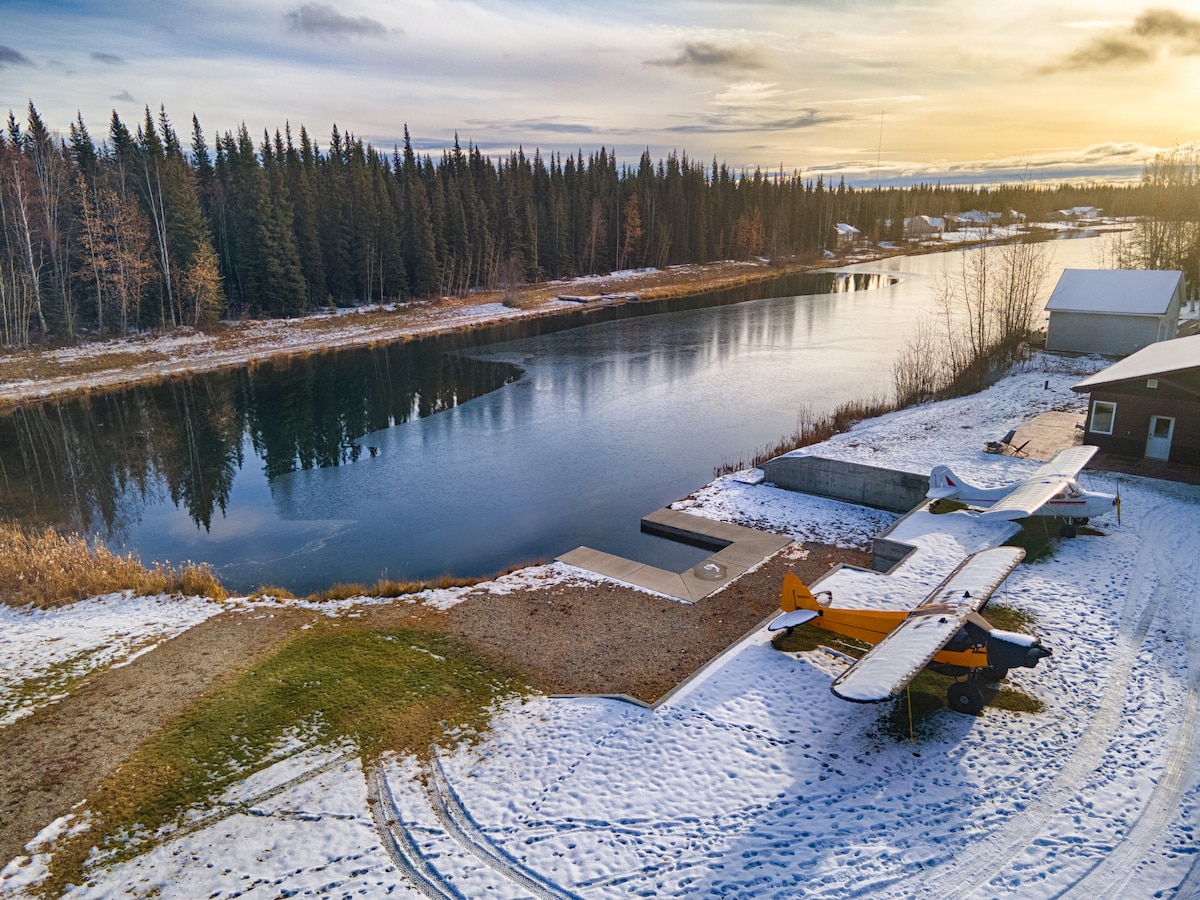 **河上的原木小屋!阿拉斯加*极光探险