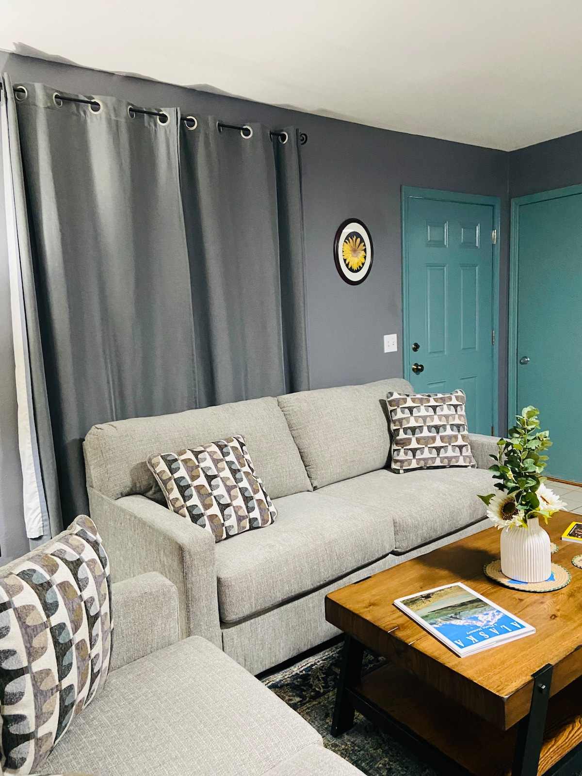 This is a brand new modern Alaskan apartment. Have a great day of outdoor adventures and come back and enjoy a warm bath in a jetted tub with custom tile shower surround. Brand new couch with ottoman and sleep on a comfortable king size bed. For the cold winter days warm up your feet on the nice radiant heated floor. Self check in. Washer and dryer! 65” QLED TV in living room. Bedroom TV as well. Close to the airport, UAF, tourist attractions, stores, restaurants, trails and bus stop.