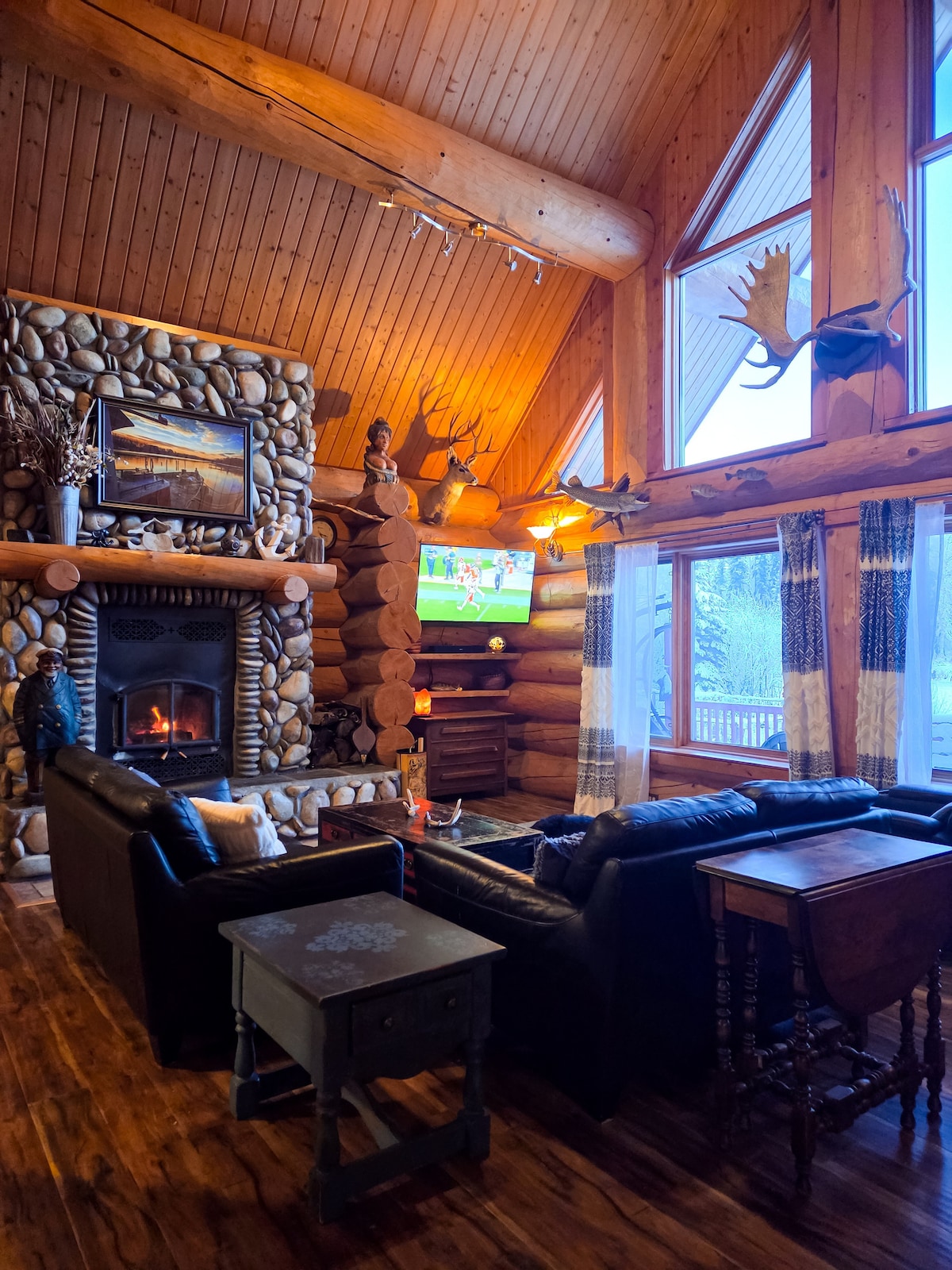 Scandinavian Lodge is located about 30 minutes southeast of Fairbanks. It is located just 10 minutes drive from Eielson Air Force Base. The main lodge, a beautiful handcrafted Alaskan log home, has two bedrooms, a kitchen, bathroom, and living room. Our place is the perfect getaway spot. It is also a very convenient and peaceful place to stay if you have a commitment to working at Eielson Air Force base. It is very close, but at the same time, you can enjoy the Alaskan lifestyle.