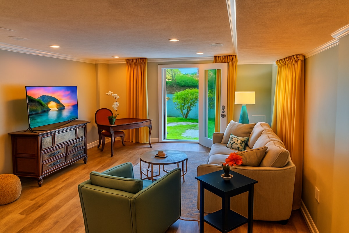 Whether you choose to dine on your own patio or drive into nearby Old Town or DC, we are in a peaceful suburb surrounded by nature yet close to all the action. This English basement garden apartment has its own entrance, patio, bathroom, kitchenette, bedroom, living/dining room, high-speed WIFI, Roku TV, and parking space. Prefer hosting guests on long stays (4wks minimum); allow up to 2 quiet dogs (no cats) with host pre-approval and pet fee. No smoking, vaping, drugs, parties. FC# 24-00020