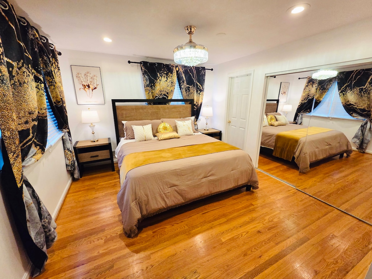 A mid-century luxury retreat for up to 4 guests. This home features over 1,500 sq. ft. of living space, including a full kitchen, family room, workspace with ultra high-speed Internet, 2 bedrooms and 1.5 bathrooms. Gleaming marble tile throughout. Have your personal spa day in the showstopper oversized bathroom with a jacuzzi tub, large walk-in shower, and sauna!... located ten minutes away from Dulles international Airport. 35 minutes away from Washington DC.