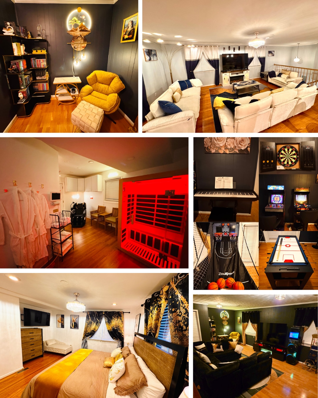 Perfect for families or groups, this spacious 5-bedroom, 4.5-bath home offers comfort, convenience, and luxury. Relax in the private sauna located in the master suite, enjoy blazing-fast WiFi, and take advantage of the ample parking. With multiple living areas, a fully equipped kitchen, and modern amenities throughout, this home is ideal for both short getaways and extended stays. Whether you're here to unwind or explore, you'll feel right at home.