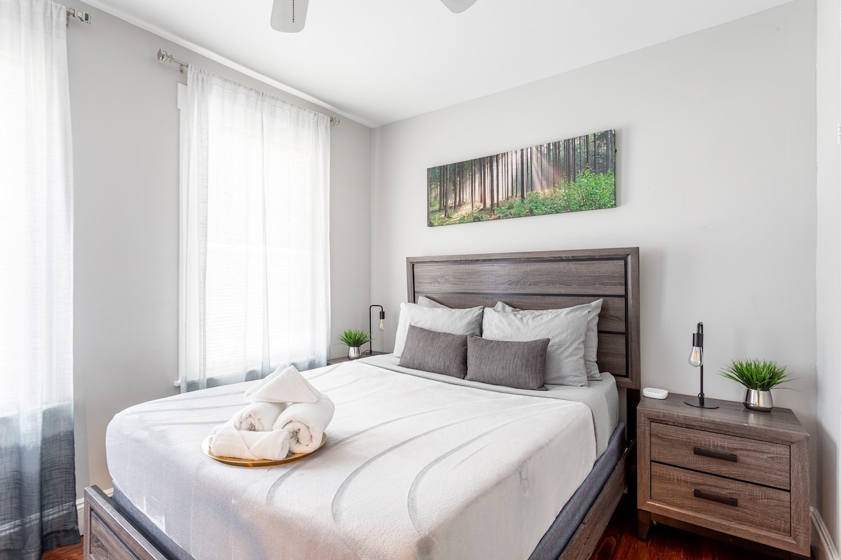 舒适加大双人床卧室|步行可达海滩|靠近市中心