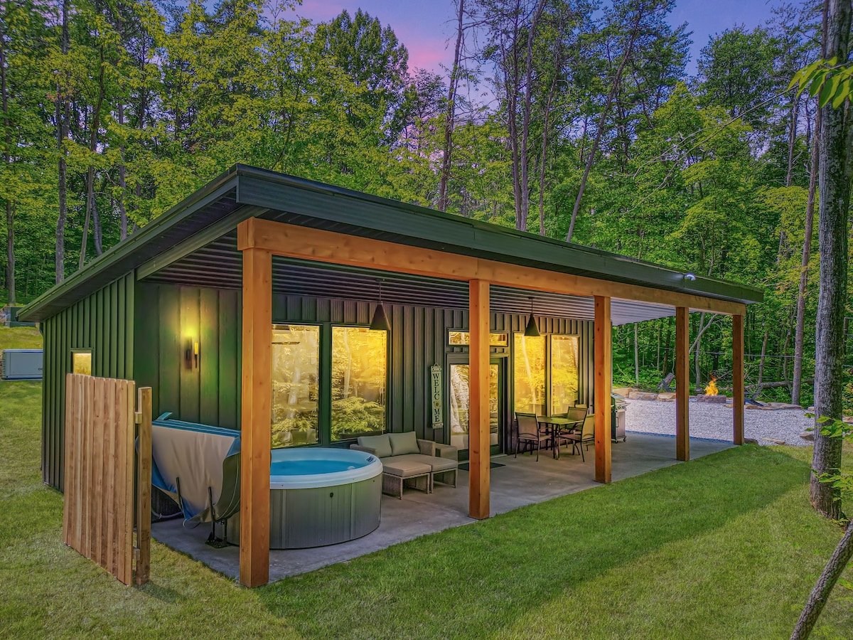Why you'll ❤️ The Ashton: ・Secluded & romantic 1-bedroom escape in the woods ・Private hot tub under the stars ・Modern design with floor-to-ceiling windows ・Pet-friendly getaway for couples & pups ・Stylish full kitchen・Cozy fire pit area ・Fast Wi-Fi + Smart TV w/ streaming ・Nature escape just minutes from Hocking Hills ・ Luxurious walk-in shower & double sinks ・Ideal for a romantic weekend or solo retreat Click "❤️ Save" to easily find us again. Read the full listing for all the dreamy details.