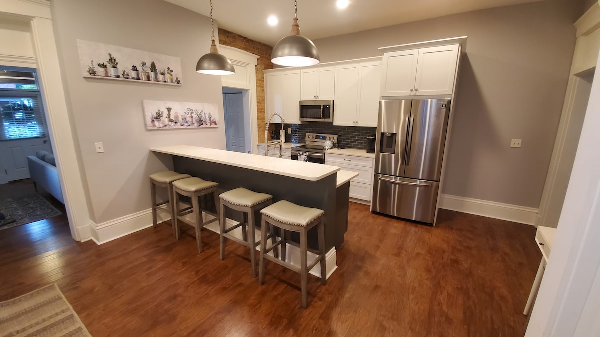 Steps away from Main Street, this property is close to everything making it easy to plan your visit. It's located on one of Hamilton’s most beautiful streets in the Rossville Historic District, is one of the oldest rental properties in the county, and is the on the historic registry. However, the unit is completely remodeled and updated with stainless steel appliances, subway tiled kitchen, ceramic tile shower surround, and laminate vinyl plank throughout. A cool, quaint place!