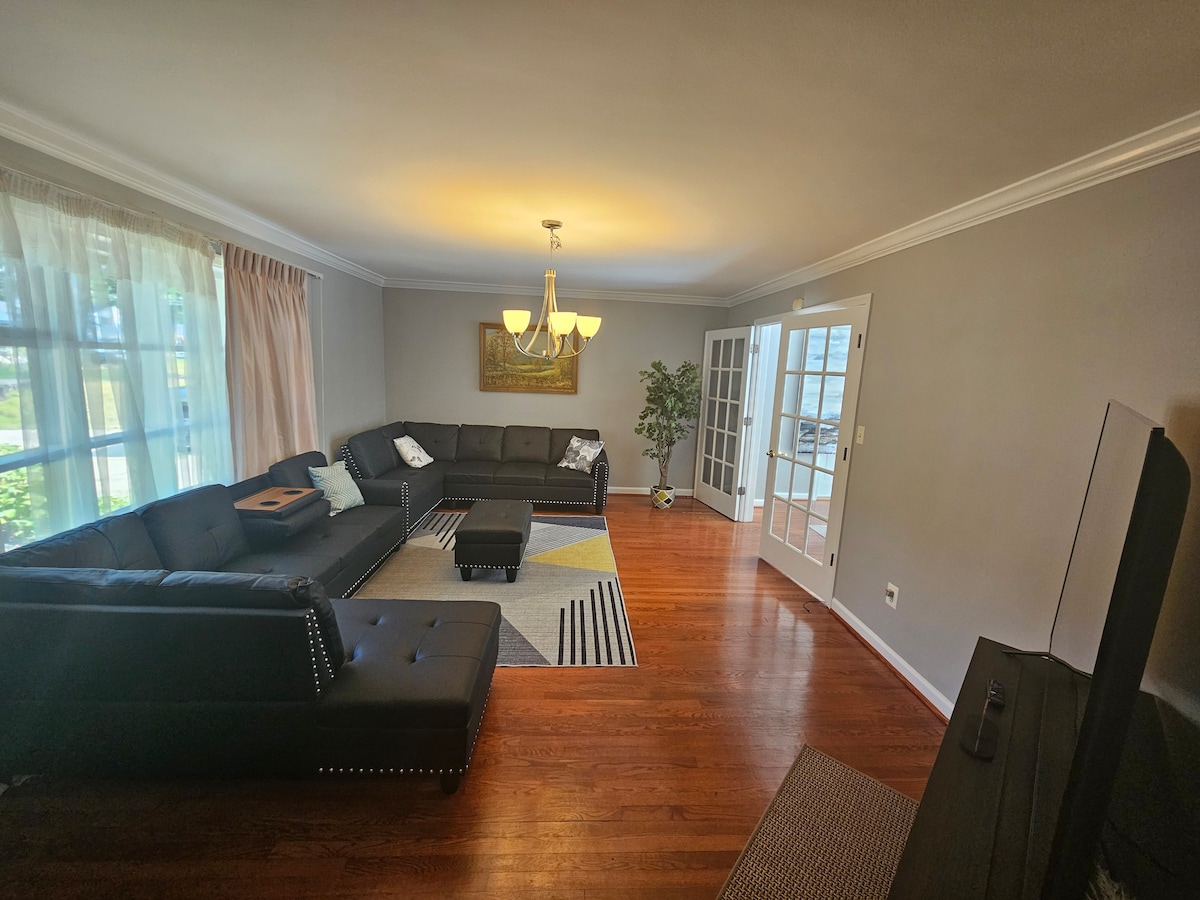 Welcome to this new beautifully designed guest living space. The space comes with a 70" LG 4K HDR TV in the living room that is paired with a full equipped Dolby Digital 5.1 surround system, an Electric Fireplace, a Highspeed internet, each room has a smart 4k tv. There is a fully equipped kitchen, dining area, living room with sofa, bathroom, and bedrooms with queen beds. The space has a very beautiful modern design. Less than a mile away from shopping centers, Fast foods and a hospital.