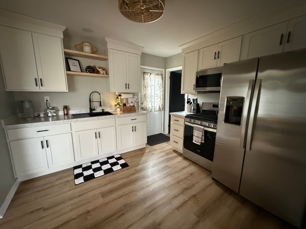 Come relax & enjoy The Retreat at DTW! Just minutes away from Historic Downtown Willoughby where you can shop, dine & stroll the streets at your leisure. This completely renovated single family ranch home has so much to offer. Including all kitchen appliances, washer & dryer, all necessities (kitchenware, towels, sheets, etc.) & playing cards plus board games for your pleasure. The bedroom has a king bed & living room has a sofa bed. Enjoy the reading nook on the 2nd level loft area & backyard.