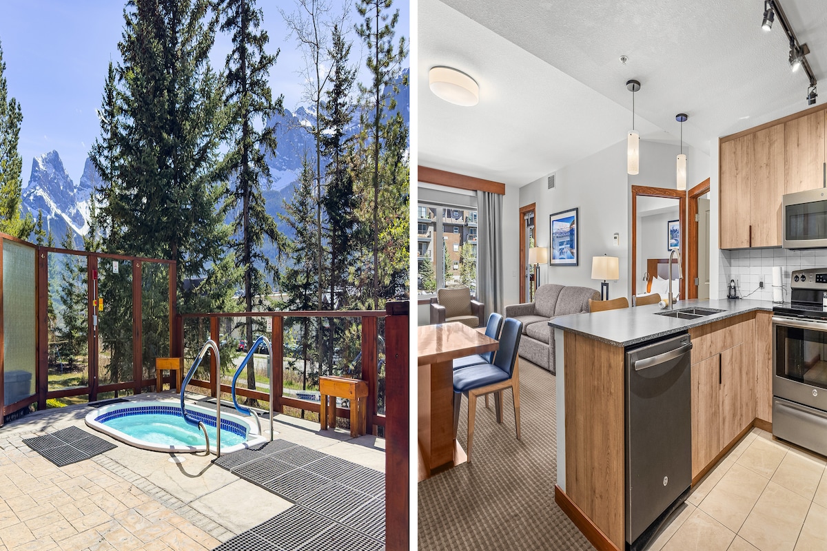 Relax, Rejuvenate & Recreate in this purpose-built, scenic suite. Enjoy the thoughtful interior amenities; heated bathroom tiles, Jotul gas fireplace and incredibly comfortable & cozy King bed. The suite's extra-large main window frames the majestic CDN Rocky Mountains, visible from bed, the sofa and granite bar counter. The private, rooftop moutain view deck is a micro-Nordic Spa with a cedar barrel wet sauna, cold plunge (non-winter), heated hammocks, sectional couch & firetable.