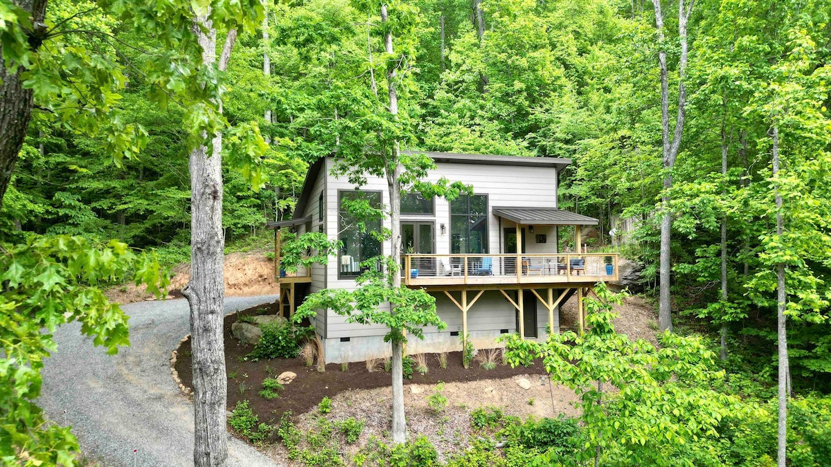 Holly Haven is a privately owned, pet-friendly A-frame cabin tucked away from the hustle & bustle, yet central to downtown Asheville, Black Mountain, Biltmore Forest, and the Blue Ridge Parkway. Its modern design blends cozy, peaceful vibes - every detail thoughtfully crafted for your stay. Set on 1.5 acres atop a hill, it's easily accessible (no 4x4 needed) and features a fire pit with complementary firewood, hammocks, a fully stocked kitchen, and a HUGE deck with a gas grill.