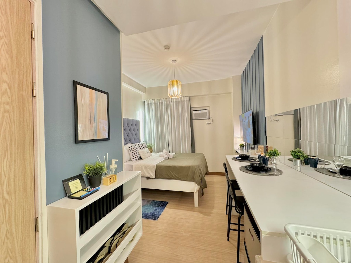 Kick back and relax in this calm, stylish space bauhaus-inspired studio unit with a city and mountain view that captures dreamy mornings and bed weather vibes. We pride ourselves in having a clean studio condo at an affordable price! Discounts for longer stay. 🅿️PARKING RATES: (Please inform ahead of time) 🚘 Car -₱250 to ₱300 🛵 Motor - ₱150 to ₱200 💦SWIMMING POOL DETAILS: Proper swimwear is required 🩱 Swimming Time: 8AM to 10PM ₱150/pax regular days ₱300/pax holidays