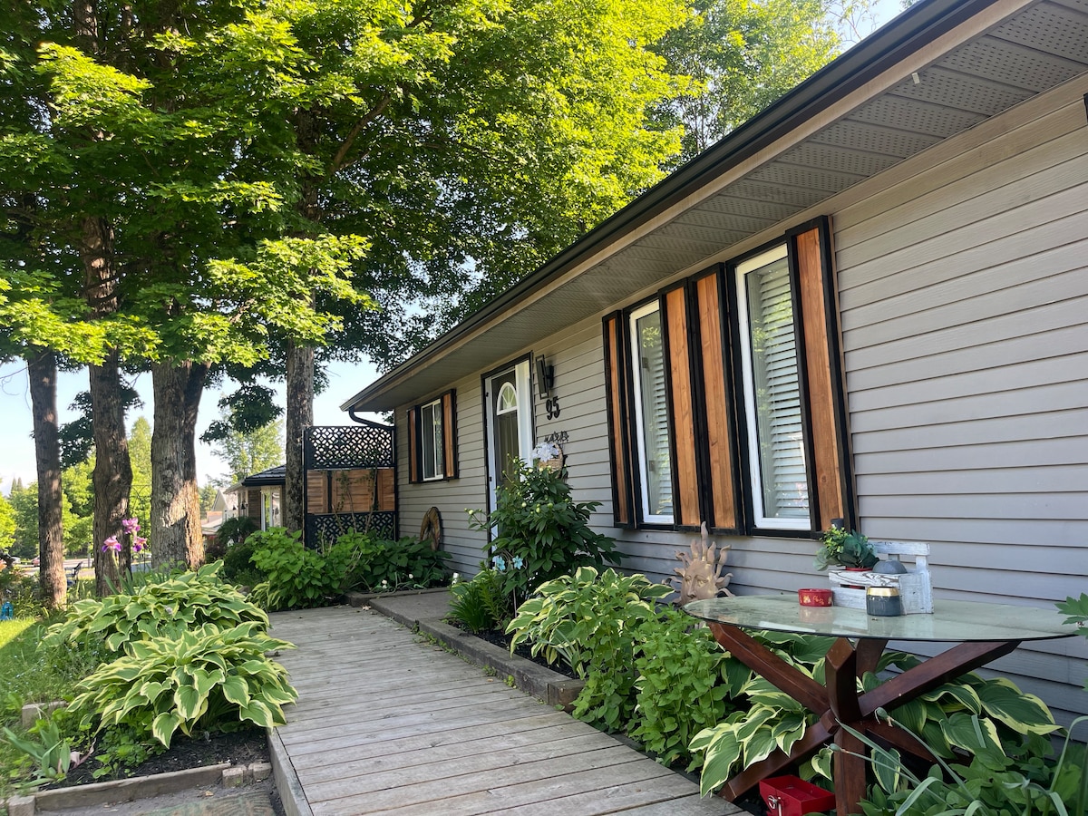 Enjoy the perfect blend of historic Huntsville in my custom crafted Coach House! Centrally located, it radiates a cozy Muskoka cottage ambiance, with historic Main Street just steps away with cafes, shops & many attractions. Enjoy lake adventures w/public docks or rent a canoe/kayak from Algonquin Outfitters. Offering stellar amenities like fast Wifi, free parking, a well-equipped kitchenette, back patio w/BBQ, hammock, Smart TV, skylights, and a comfy queen bed. Welcome to your perfect getaway!