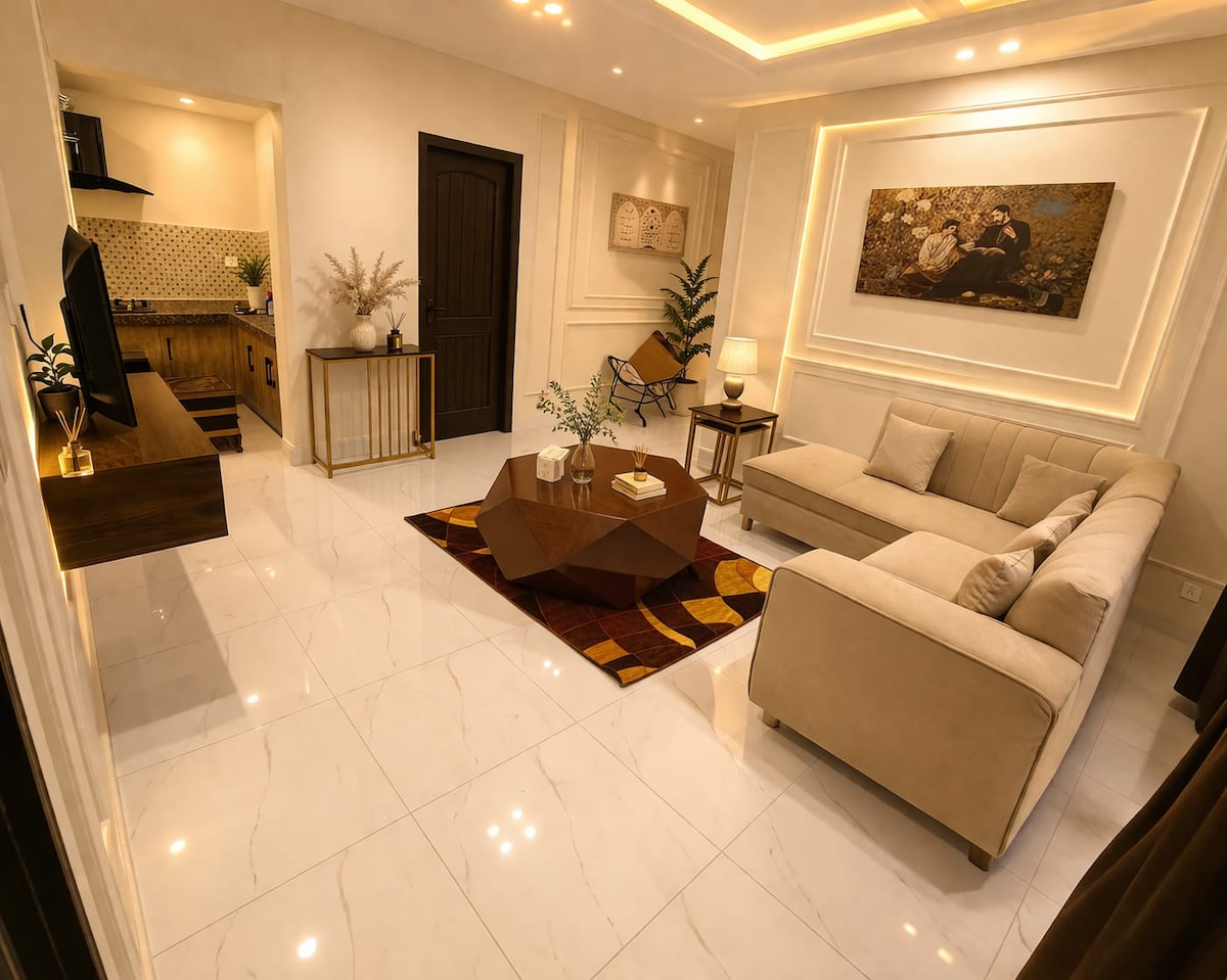 its 5star Ground floor Apartment located at Lush green area on Lower canal road Faisalabad Best for Families, business travelers & groups Its very close to all attractions like kohinoor , D.ground and Lyalpur Galleria. Gated security 24 hrs its on Ground floor with all living facilities 2 Air conditioned rooms with attached baths hot water 1 Living Levish Fully operational kitchen 🌙 wifi+ free Netflix Laundry area with automatic washing machine Food delivery facilities nearby