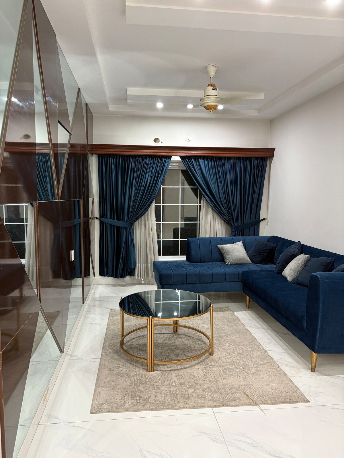 its 5star Ground floor Appartment located at Lush green area on Lower canal road Faisalabad Best for Families, business travelers & groups Its very close to all attractions like kohinoor , D.ground and Lyalpur Galleria. Gated security 24 hrs its on Ground floor with all living facilities 2 Air conditioned rooms with attached baths hot water 1 Living Levish Fully operational kitchen 🌙 Ramzan special wifi+ free Netflix Laundry area with automatic washing machine Food delivery facilities nearby