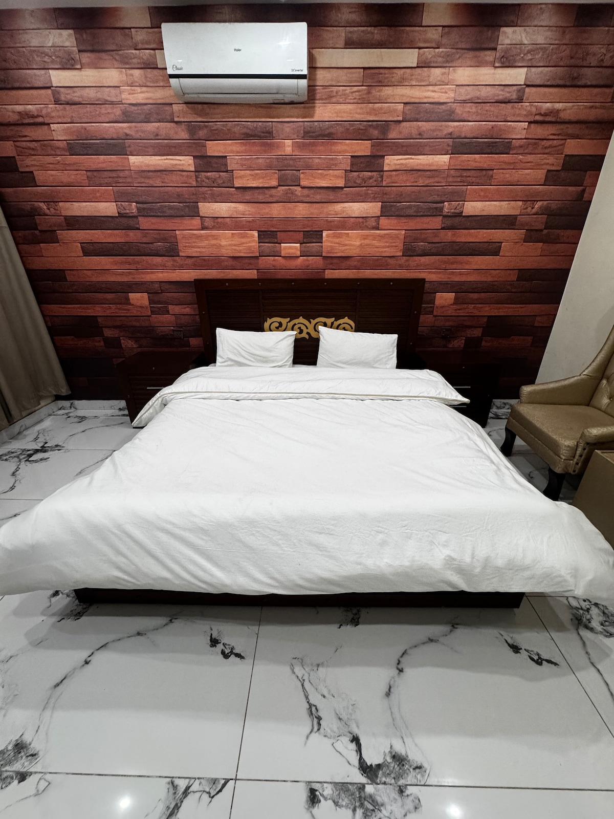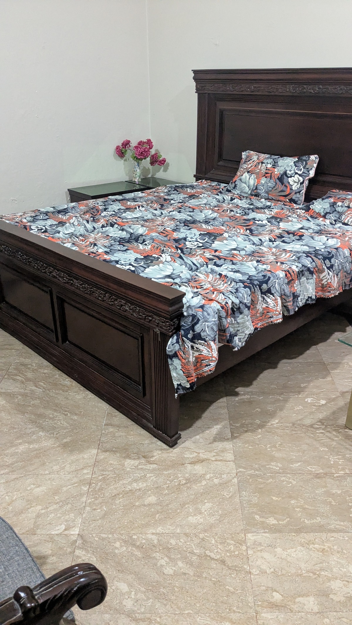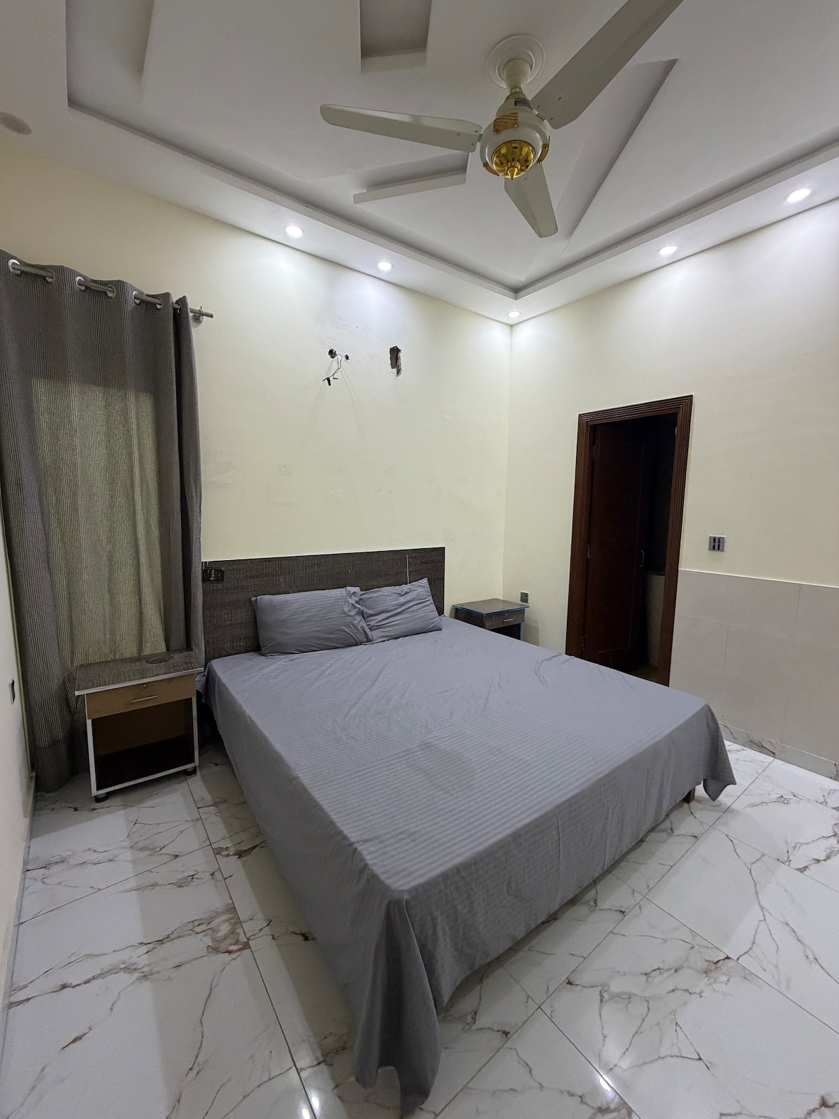 This luxury, fully furnished private ground-floor home is located in the peaceful and secure area of Kohinoor Town, Faisalabad, offering complete privacy with an independent entrance. The space includes 1 spacious bedrooms with attached bathrooms, a large TV lounge, and a separate dining area. sterilized linens ,heated and air-conditioned, with high-speed Wi-Fi, power backup, laundry service, and free car parking for up to 4 vehicles. Ideal for daily and monthly stays.