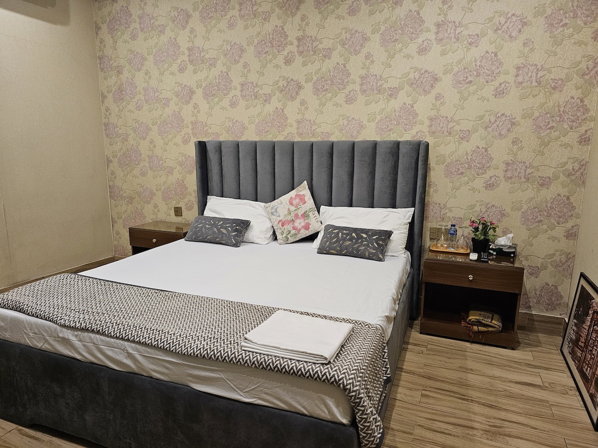 It is a modern cozy apartment suitable for couples and small families in a residential arena. It is located at the hub of Faisalabad city.