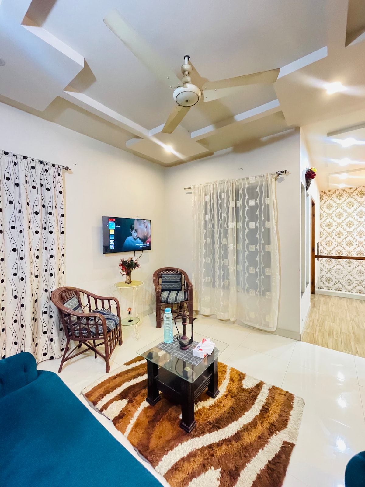 its 5star Ground floor Appartment located at Lush green area on Lower canal road Faisalabad Best for Families, business travelers & groups Its very close to all attractions like kohinoor , D.ground and Lyalpur Galleria. Gated security 24 hrs its on Ground floor with all living facilities 2 Air conditioned rooms with attached baths hot water 1 Living Levish Fully operational kitchen 🌙 Ramzan special wifi+ free Netflix Laundry area with automatic washing machine Food delivery facilities nearby