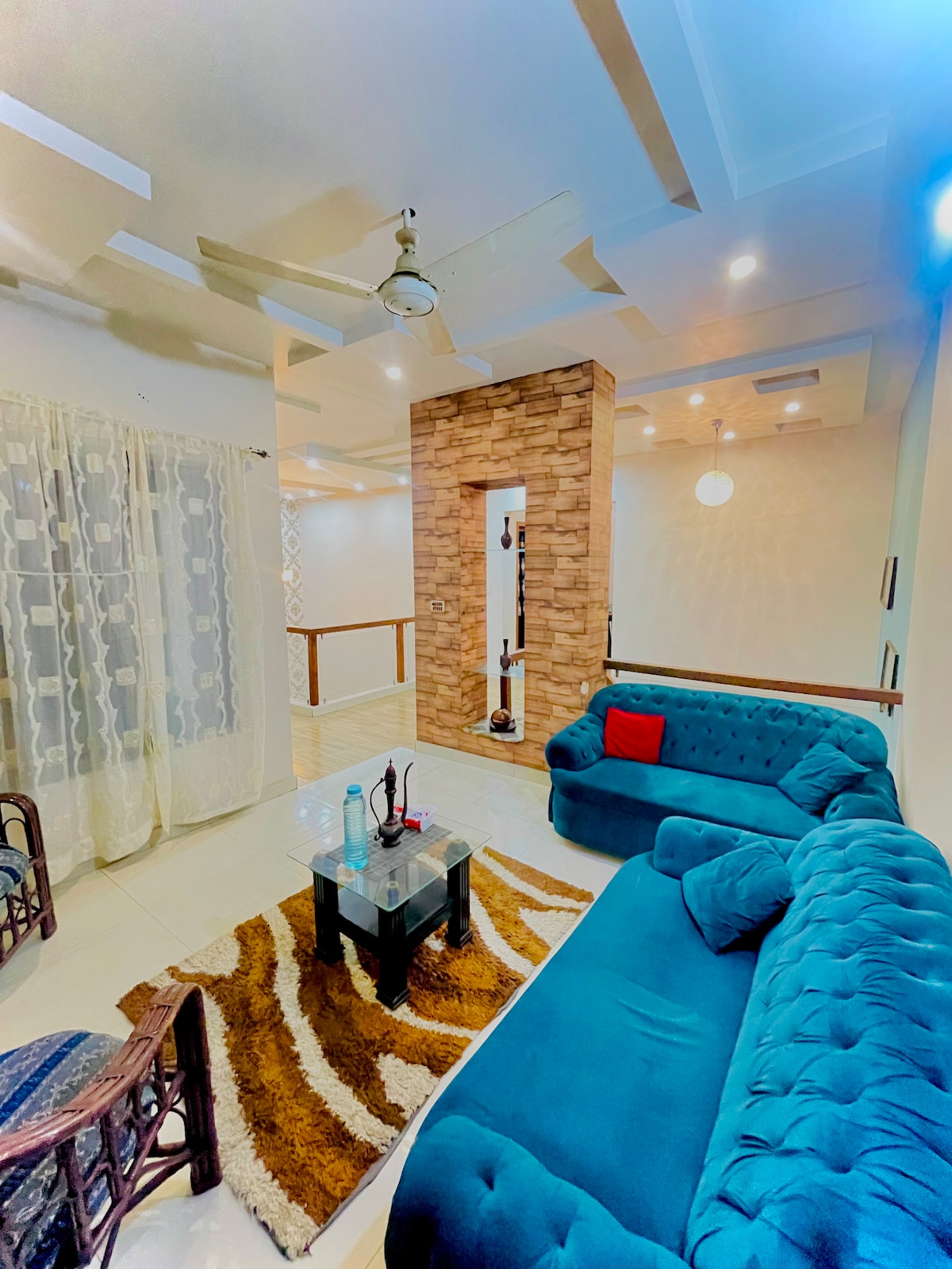 its 5star Ground floor Apartment located at Lush green area on Lower canal road Faisalabad Best for Families, business travelers & groups Its very close to all attractions like kohinoor , D.ground and Lyalpur Galleria. Gated security 24 hrs its on Ground floor with all living facilities 2 Air conditioned rooms with attached baths hot water 1 Living Levish Fully operational kitchen 🌙 wifi+ free Netflix Laundry area with automatic washing machine Food delivery facilities nearby