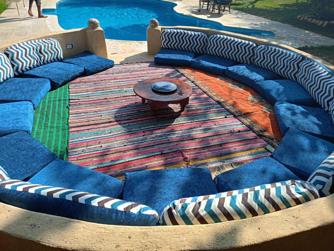 A uniquely architected private accommodation in Tunis Village overlooking the scenic Qarun lake. The living space includes the 1st floor of a gorgeous villa with a beautiful garden and outdoor pool, featuring 2 large bedrooms, a kitchen, living/dining hall, upper terrace and a full bathroom.