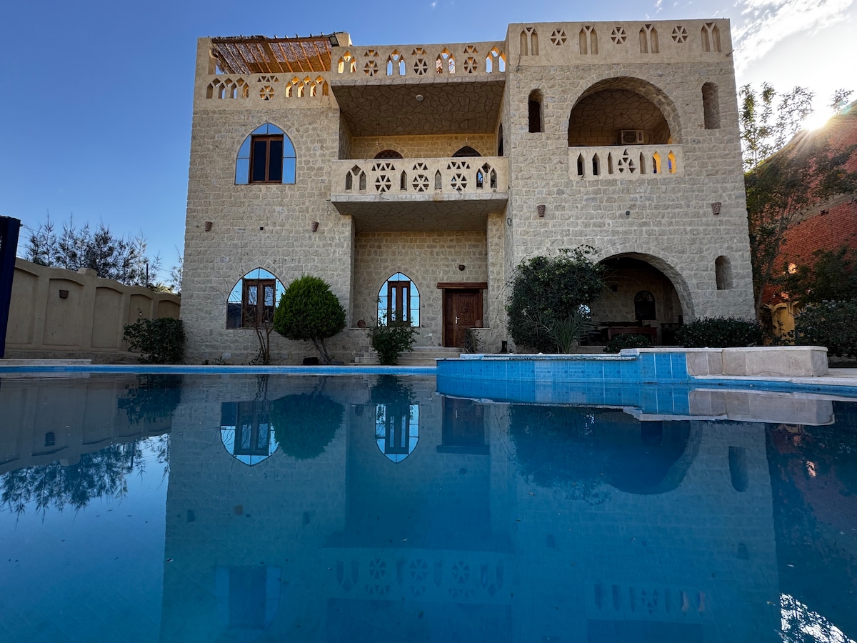 A private accommodation in Tunis Village overlooking the scenic Qarun lake. The living space includes a fully equipped studio with a beautiful garden & an outdoor swimming pool.
