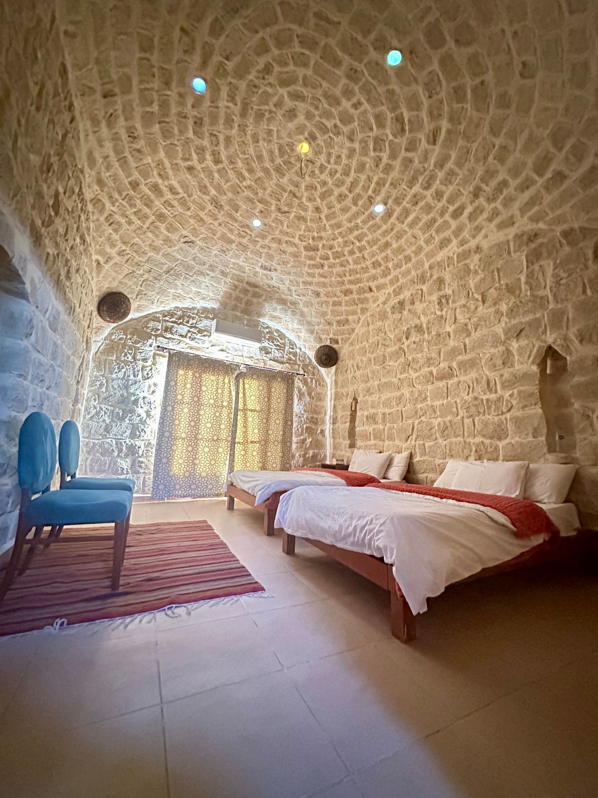 ستسحر بهذا المسكن الرائع.غرفه علي شكل قبه والحجر مباني بيئيه داخل مزرعه في قلب الطبيعه