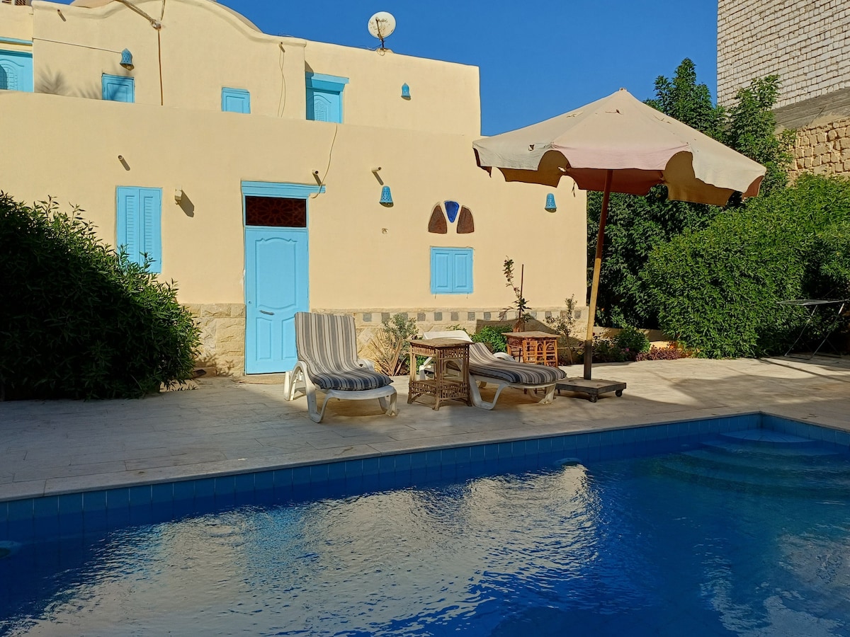 Country House located in Tunis Village in Fayoum, in front of Qaroun Lake with view directly to the lake. It has - 4 bedrooms: *2 in first floor (1 rooms with twin beds,1 with queen bed) *2 in second floor (1 rooms with twin beds,1 with queen bed) -Kitchen with all tools ex (Bowls, chopsticks, plates, cups, Oven, Refrigerator, etc) -3 bathrooms. -Private pool . -Private garden with large out door area.
