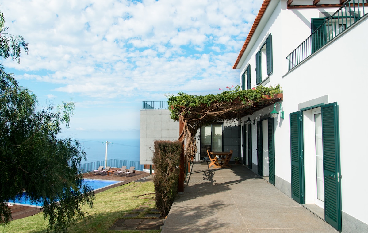 Detached house inside an Agritourism property called "Casas da Levada", with breakfast included in "do it your self" mode. From an old wine cellar, where the farm tools were kept, "Casa da Cascata" was rebuilt, keeping its original stone layout, balancing the rustic and modern line. Facing the pool, it offers an exclusive view of the Atlantic Ocean and a unique sunset from the western most tip of Madeira Island.