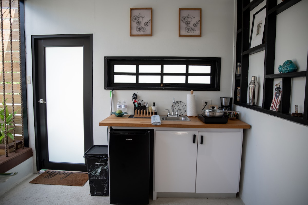 Precioso Apartamento para 2 personas totalmente independiente (son 5 en total) TENEMOS PANELES SOLARES, con entrada independiente, cada 1 con dormitorio, baño, cocina, estufa , microondas, lavadora, secadora, aire acondicionado en la habitación , wifi, parking privado decorado con murales, patio con proyector y Bbq, roku Tv y netflix. Cerca de todo¡ Supermercados ,Hospital , Farmacias, a minutos de la playa Seven Seas