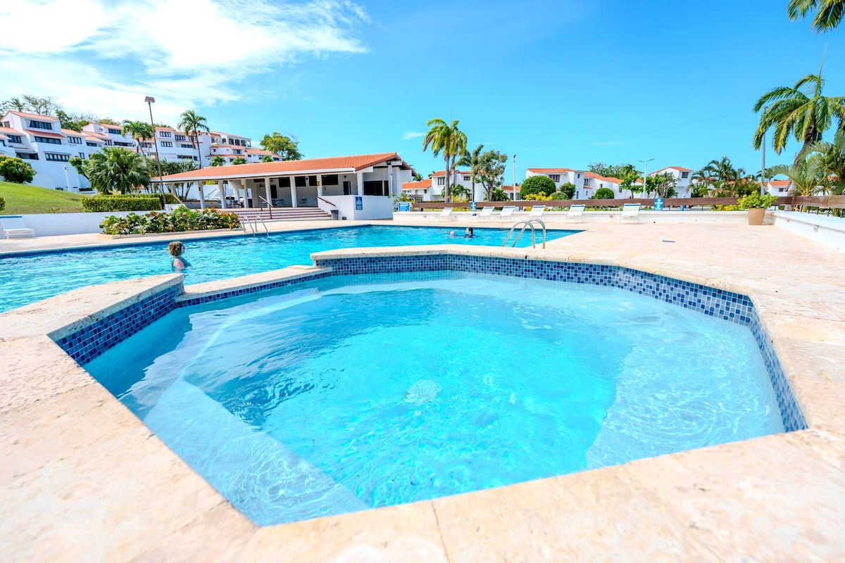 Relájate en esta escapada única y tranquila. Bello apartamento con balcon una Vista Impresionante. 1 Estacionamiento, 2 Habitaciones (1 recamara cama queen, 2nda recamara cama litera full/twin, 1 twin , ambos con A/C, 1 baño, cocina equipada, Roku TV, internet, Piscina comun (cerrada por el momento), Acceso a la playa desde el Condominio Cerca de los Kioskos de Luquillo, El Yunque, Hacienda Carabali Farmacias, Fast Food, aeropuerto y mas...