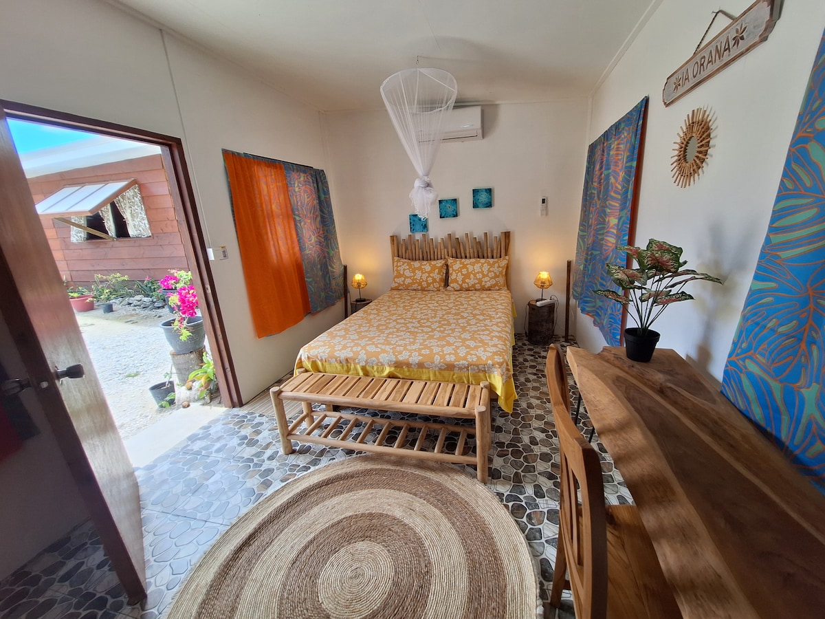 Bienvenue au Fare ‘Una’Una - Fakarava Niché au cœur d’un jardin tropical et à quelques pas d’une plage, le Fare ‘Una’Una est l’endroit idéal pour un séjour en toute sérénité à Fakarava. Ce bungalow confortable, conçu pour deux personnes. Pour explorer l’île à votre rythme, des vélos, scooters et voitures sont disponibles à la location, et un kayak est mis gratuitement à disposition. Aucun service de repas n’est proposé, mais des options de restauration sont accessibles à proximité.