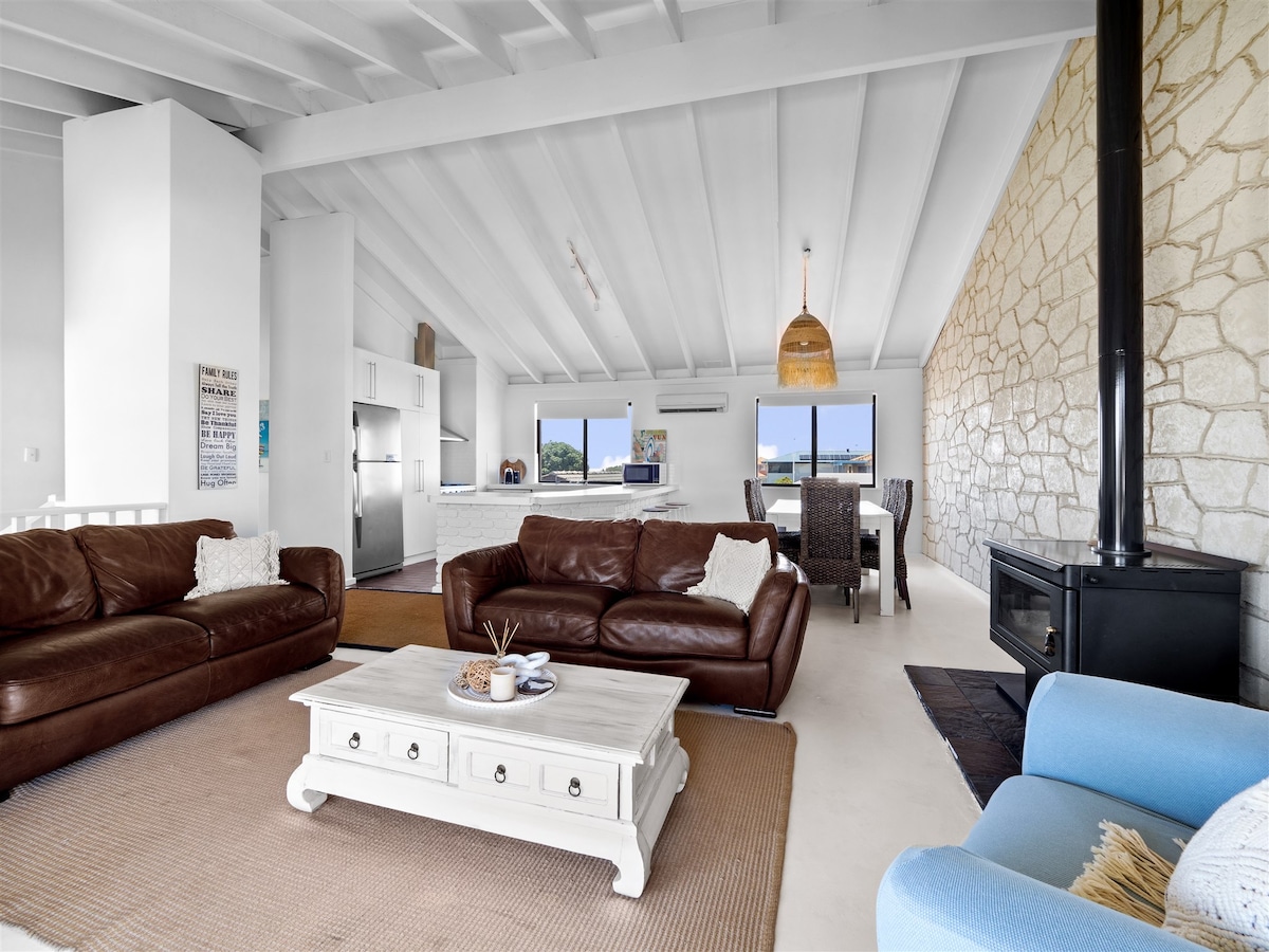 Have fun with the whole family at this stylish beachside haven. Enjoy all the amenties this newly renovated house offers including industrial inbuilt coffee maker, large screen tv, circular fireplace and amazing ocean views. Less than a 200m walk to the beach and 1km to the popular and safe swimming area of Falcon Bay. Enjoy your days living it up in sun, evenings spent watching the sun go down before toasting marshmallows around the fire pit.