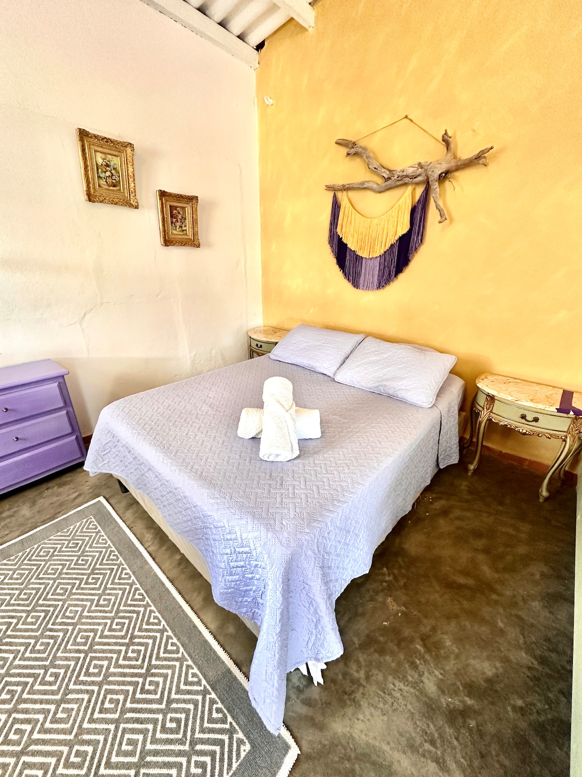 Acogedora y estilizada, esta habitación doble ofrece una cama matrimonial, baño privado, aire acondicionado, televisor con Netflix y un encantador patio privado con ducha exterior. Perfecta para parejas que buscan privacidad y confort en un entorno natural. Ubicada en Casa Paty, hotel boutique frente al mar con restaurante, spa, wifi, planta eléctrica y escuela de kitesurf. Tu refugio ideal en Adícora.