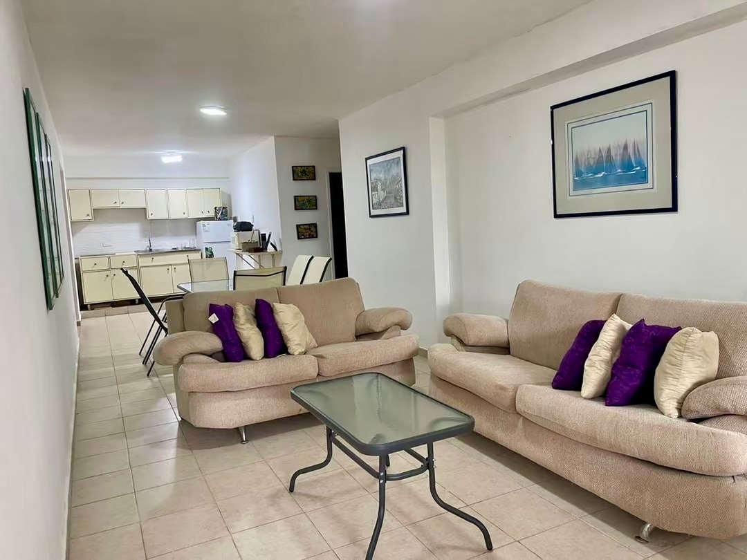 Apartamento en Conjunto Cocotero Mar II Capacidad: 6 personas (1 cama matrimonial + 4 sofá camas). Cuenta con 2 baños, cocina equipada (nevera, microondas, horno, licuadora, cafetera, etc.), aire acondicionado central, WiFi, 2 TVs con Netflix y Alexa. Pozo de agua y calentador de agua eléctrico. Conjunto: Disfruta de piscina, jacuzzi, parque infantil, parrilleras y acceso directo a la playa. Seguridad 24/7. 1/P Estacionamiento. Brazalete de $5 por persona Check-in: 2 p.m., Check-out: 12 p.m.