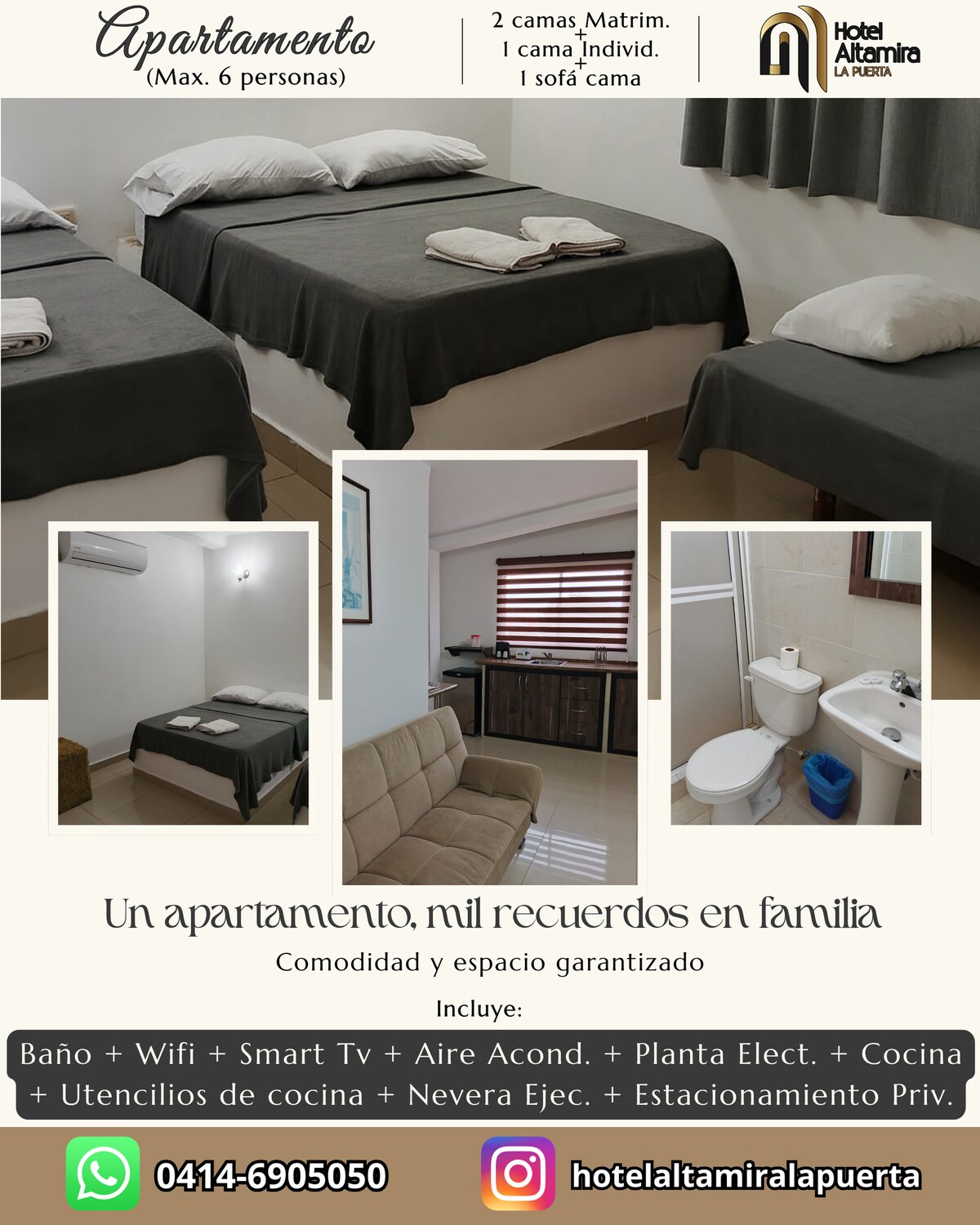Premier: Apartamento doble ambiente, Habitación privada con cama matrimonial, segundo ambiente con sofá cama para 2 personas, comedor, cocina equipada, un baño, tv por cable, acceso a todas las instalaciones del resort islas del sol (EXCEPTO AREA DE SOCIOS PISCINA 1 Y 2), estacionamientos ilimitados, restaurantes, piscinas, parque acuatico con toboganes de 14 metros de altura, playa artificial y embarcadero privado con opciones de viajes en lancha dentro del parque nacional morrocoy.
