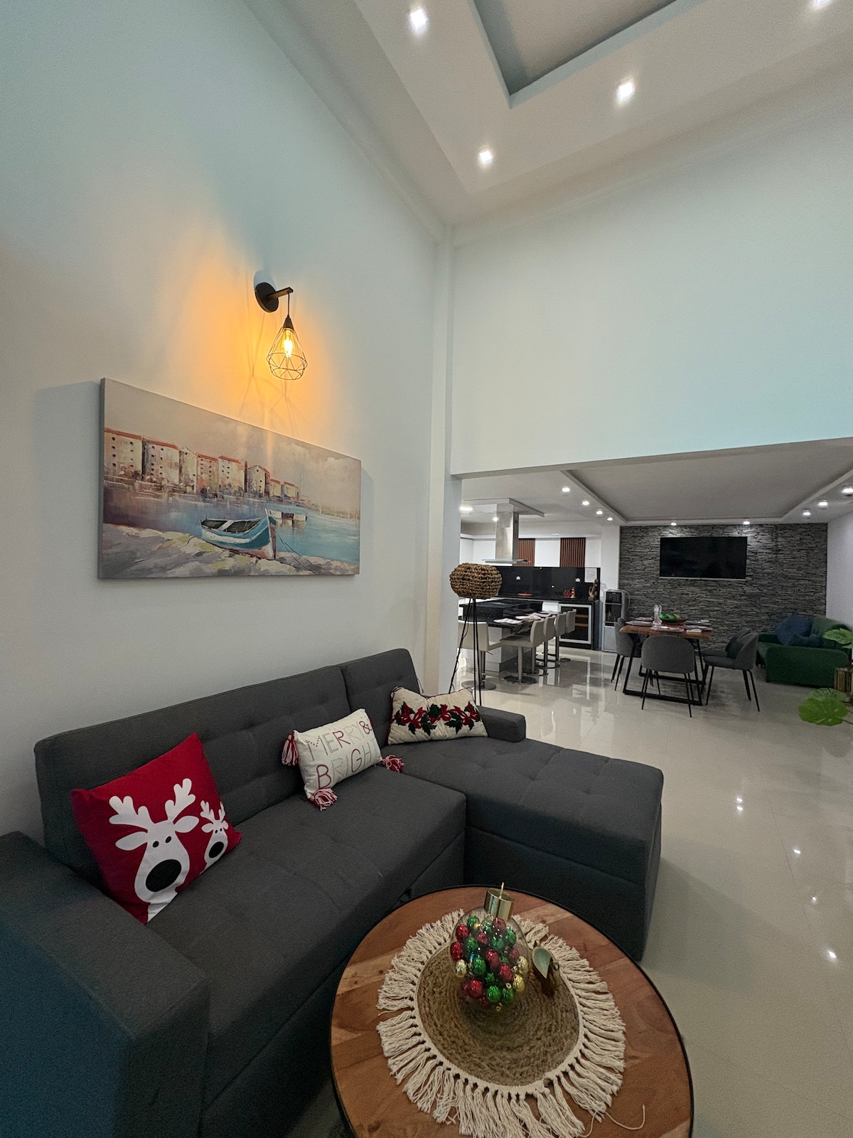 2 Level Ocean front Penthouse 198m². 100% Generator backup and 2000liter water tank. Huge private terrace with BBQ and a Resort like social area. Wifi, TV, Water Drinking tower. 5min to town center, supermarkets and restaurants.