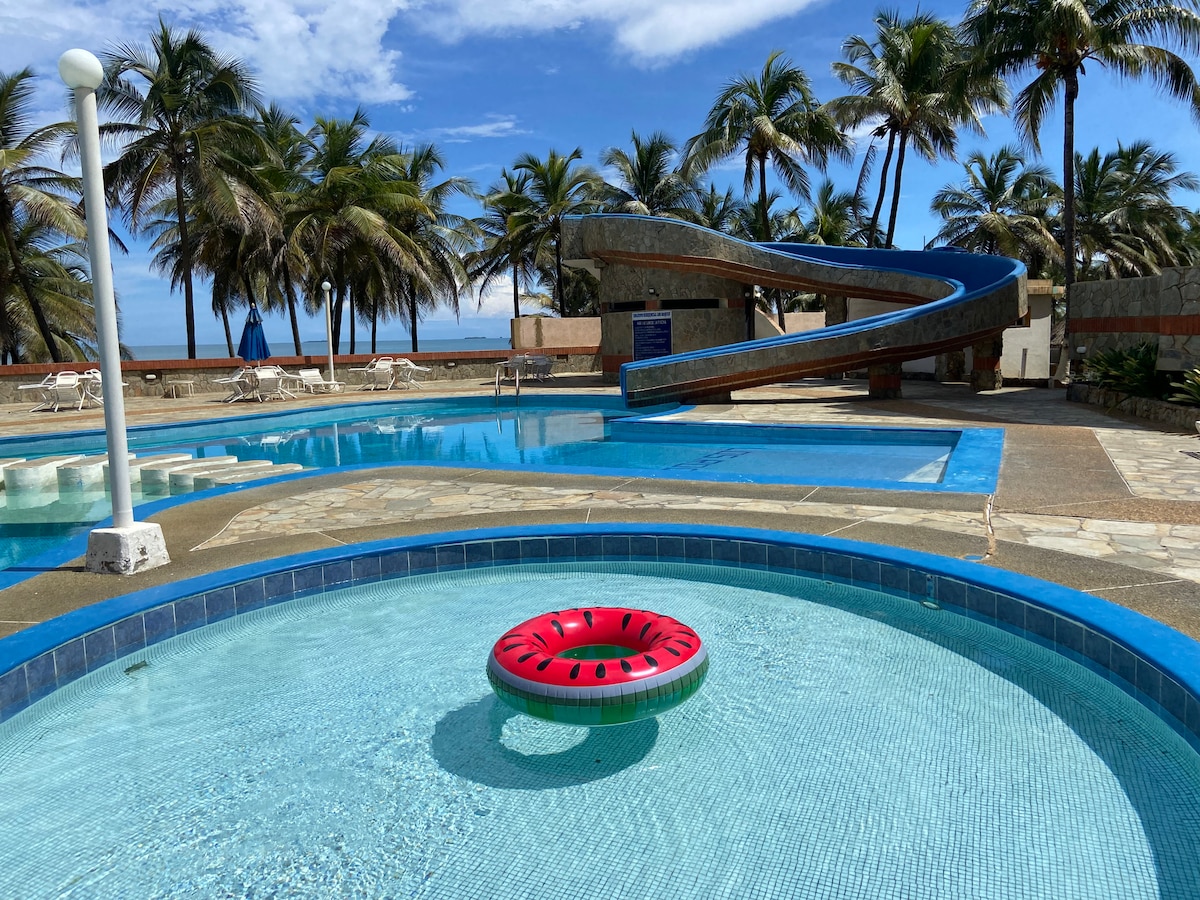 Uno de los mejores edificios en Tucacas es Nautilus Park, ya que tiene un area de piscina bastante grande con Tobogan. Ubicado diagonal al Luxor y a tan solo 5 min del pueblo de Tucacas. Apto en Planta Baja con terraza vista a la playa. No tiene planta eléctrica. Aqui no cobran extra para usar las parrilleras, y los brazaletes son solo $2 mientras que en otros cobran $5.
