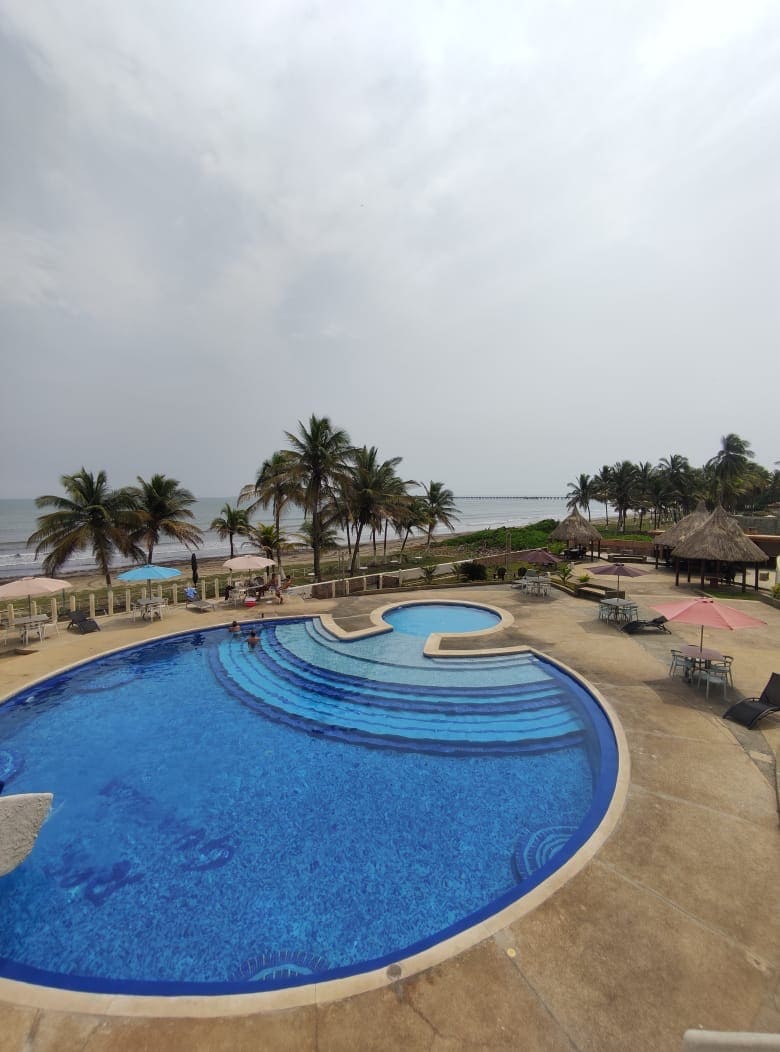 Precioso apto de lujo de playa con - cocina equipada - Internet - 2 hab. - 2 b. - lencería completa - A/C - 3 sofa-cama - Piscina de agua salada y dulce -Piscinas de niños - Grandes áreas sociales 3 restaurantes, -3 Canchas. -Pequeña Isla artificial privada con 2 playitas -malecón ver el atardecer a la orilla de la playa Sequridad 24 horas Minicentro comercial Tienda con artículos playeros ,panadería minimercado etc Privacidad Total Planta baja , terraza, parrillera ,hamacas
