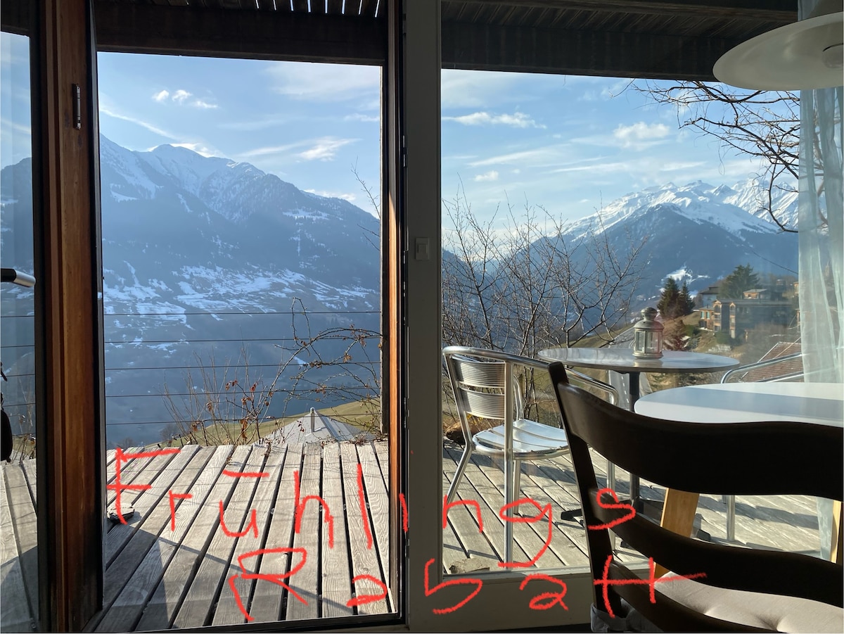 5 rooms available, about 120 m2, homy and relaxing area. Two floors and 4 bed rooms. 1 bathroom and 1 separate toilette. Bed linen and bath towels are all available and included in the price. There is a 30 m2 terrasse/platform in front of the house with an amazing view to Laax, Vally and the mountains. The house is good for couples, solo adventurers, groups and families (with kids). We have two baby beds, high chair and a basket full of toys available for families with kids. You are welcome!