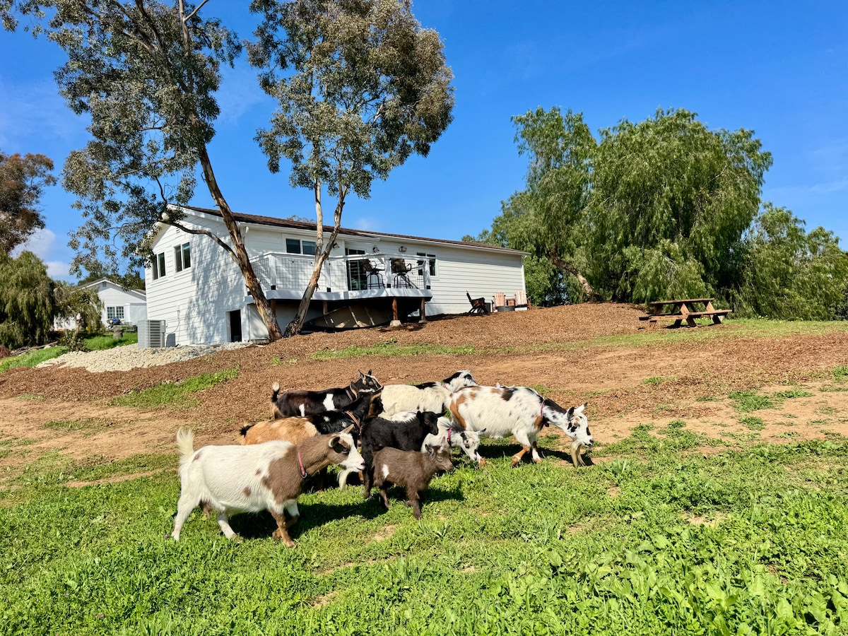 ⭐ Spacious guest farmhouse, 2 queen beds, & mountain views ⭐ Bright open-plan living w/ roll door opening to patio ⭐ Gourmet KitchenAid kitchen, swings & orange trees ⭐ Friendly horses, donkeys,alpacas & goats perfect for animal lovers ⭐ Ideal for romantic getaways, bridal stays & photo shoots ⭐ Private courtyard & patio for stargazing or celebrating special moments ⭐ Country escape just minutes from wineries & charming venues ⭐ Pet and Kid Friendly ⭐Cool evening breezes and amazing sunsets