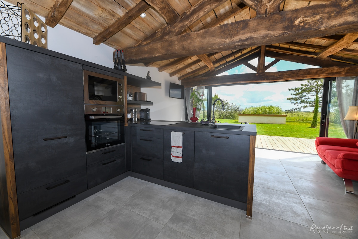 Respect du protocole de nettoyage renforcé établi par Air BnB Gîte de 130 m2 aménagé dans une ancienne grange réparti sur 2 niveaux. RdC : pièce de vie avec coin cuisine et coin salon. WC séparé. 1 chambre avec salle d 'eau privative (+ machine à laver). Etage : 1 chambre avec salle d'eau privative + couchage pour 2 enfants. WC séparé. Extérieur : cour anglaise de 93 m2 avec salon de jardin + barbecue + parasol + bains de soleil. Espace vert non cloturé accessible côté gîte et côté maison.