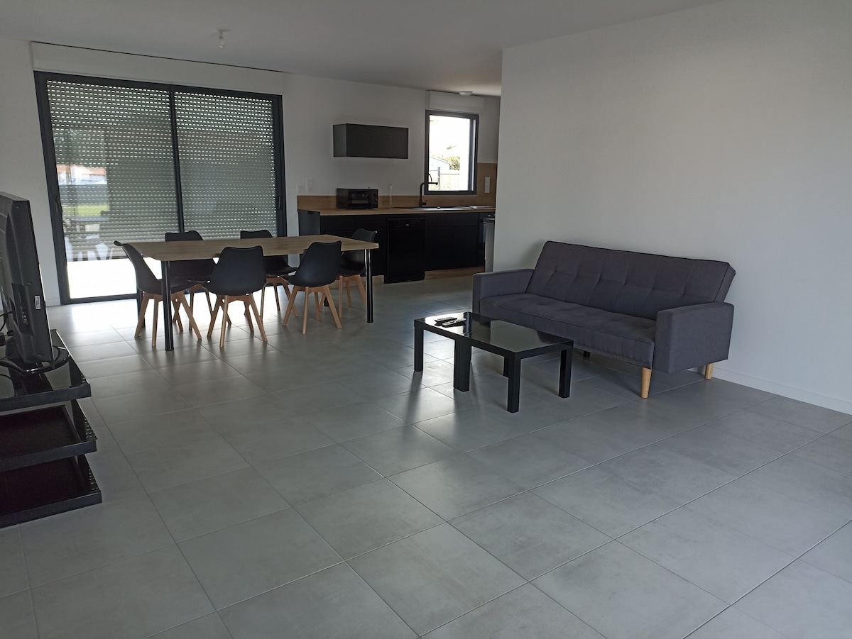 Studio de 30m² à 30 minutes de la mer. La cuisine est intégralement équipée (four, micro-ondes, lave vaisselle, lave linge...). La chambre comporte un lit 2 places et le clic clac dans la pièce de vie permet de loger confortablement 2 personnes supplémentaires. La salle de bain récente et les toilettes sont séparées. Le linge de lit et le linge de toilette sont fournis. L'extérieur privatif est entièrement clos, un barbecue et salon de jardin sont à disposition pour les beaux jours.